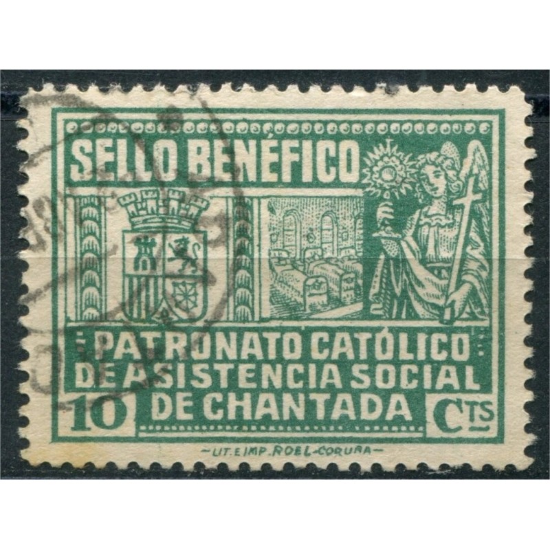 Chantada, Sello Benéfico, Patronato Católico de Asistencia Social de Chantada, 10c verde-gris, Allepuz 2, usado