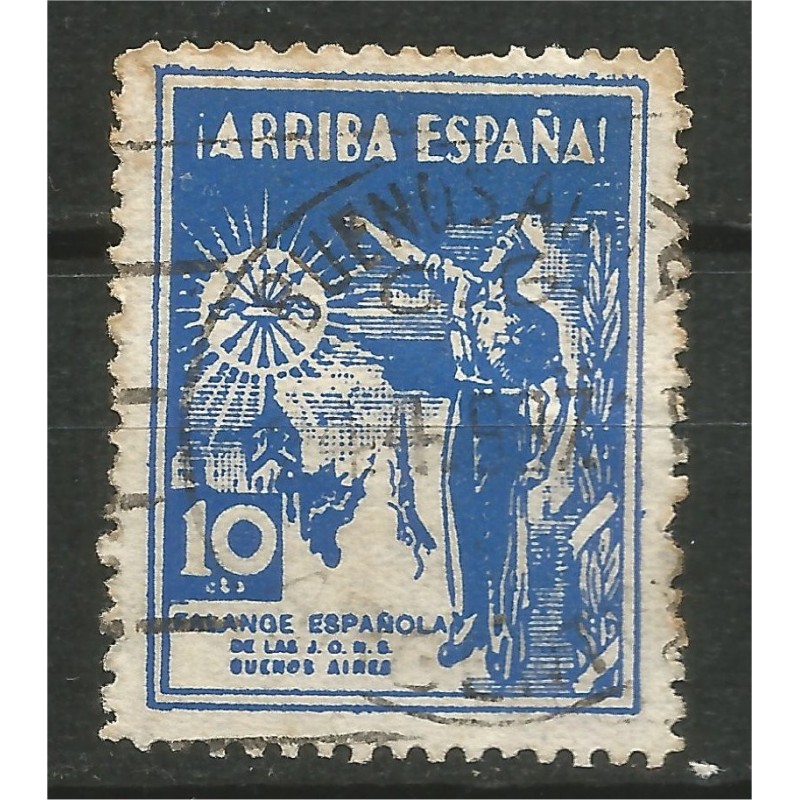 Falange Española en Buenos Aires, 10c. Rara. Usada.