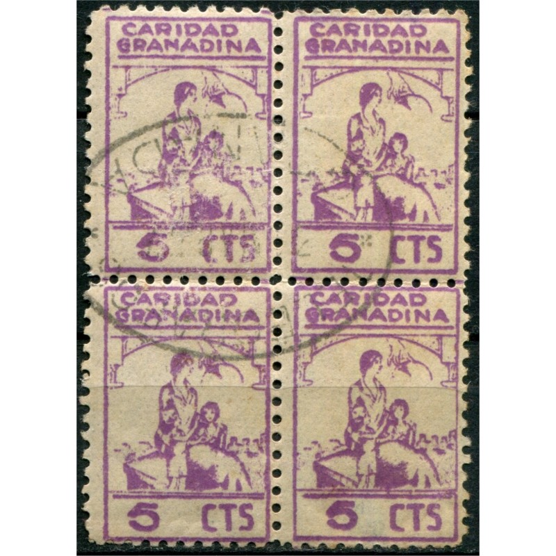 Granada, Caridad Granadina, bloque de 4, 5c violeta, Allepuz 28, usado