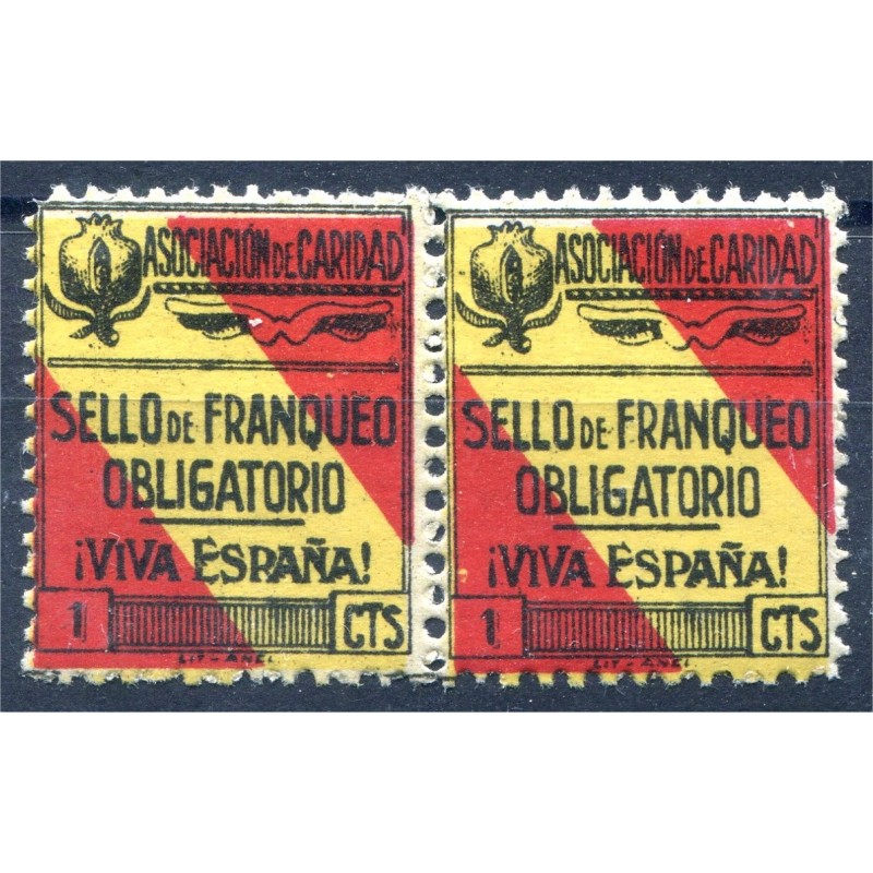 Granada, pareja, un sello (el izquierdo) con error en la leyenda, ESRAÑA en lugar de ESPAÑA, Allepuz 5a, **