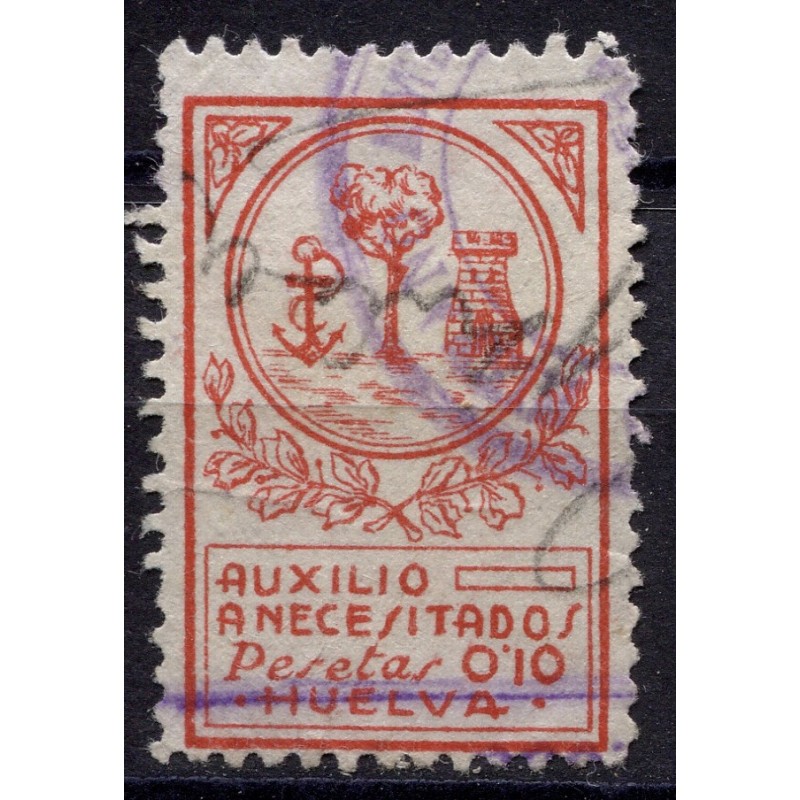 Huelva, Auxilio Necesitados, 10c rojo Allepuz 3, usado
