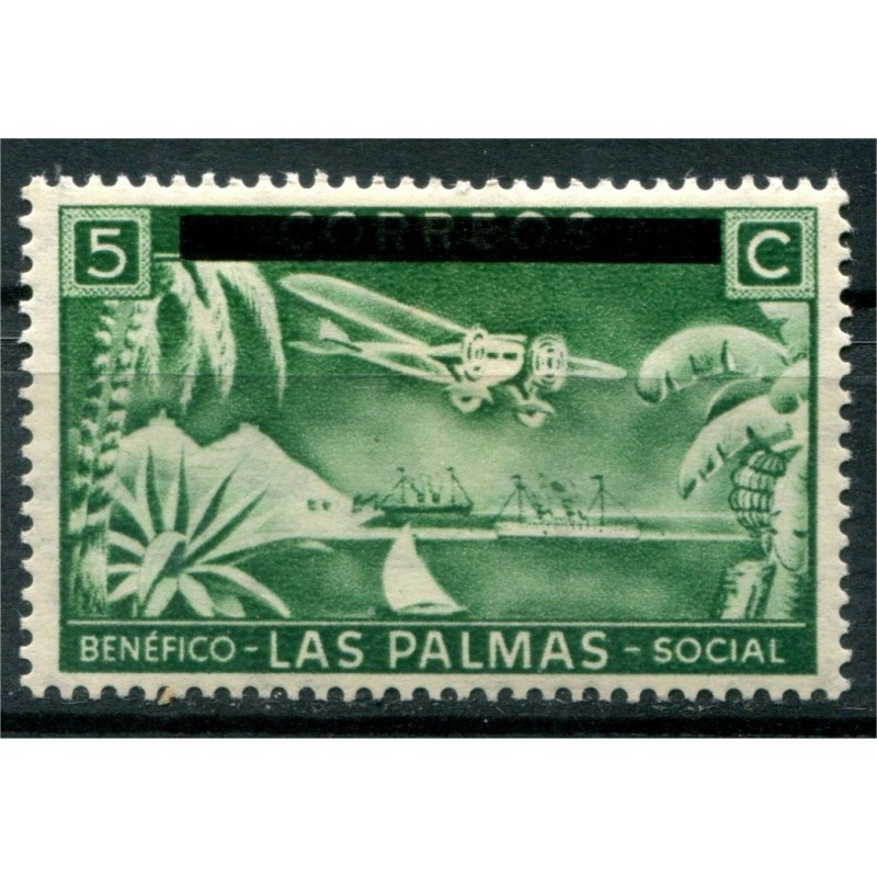 Las Palmas, Benéfico Social, barra sobreimpresa sobre Correos, 5c verde, Allepuz 44, *