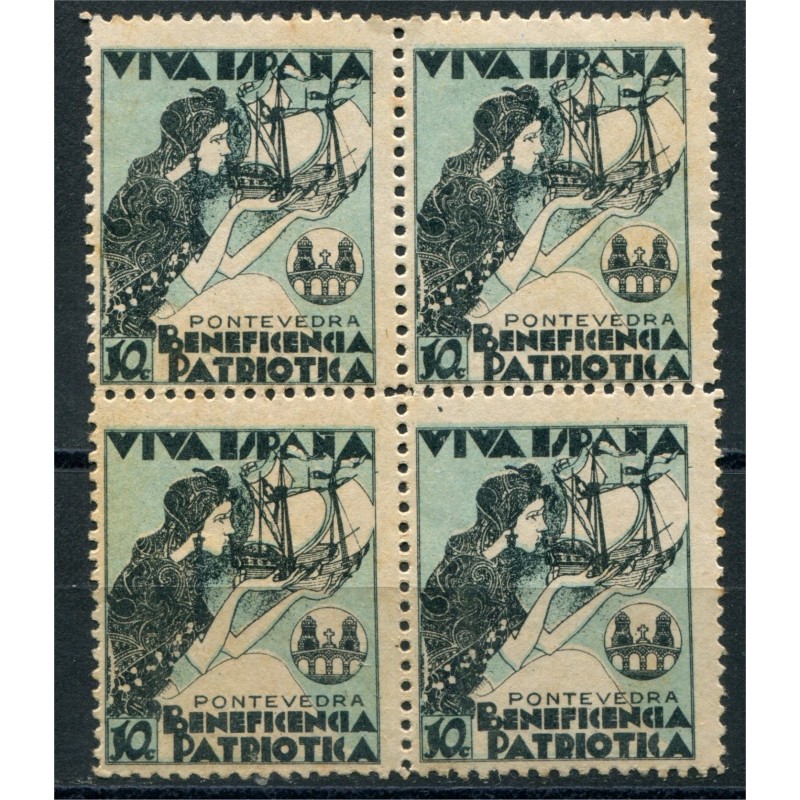 Pontevedra, Beneficencia Patriótica, bloque de 4, 10c, Allepuz 1, **
