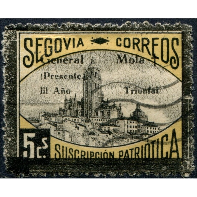 Segovia, sobrecarga de luto del General Mola sobre 5c Suscripción Patriótica, Allepuz 46, usado