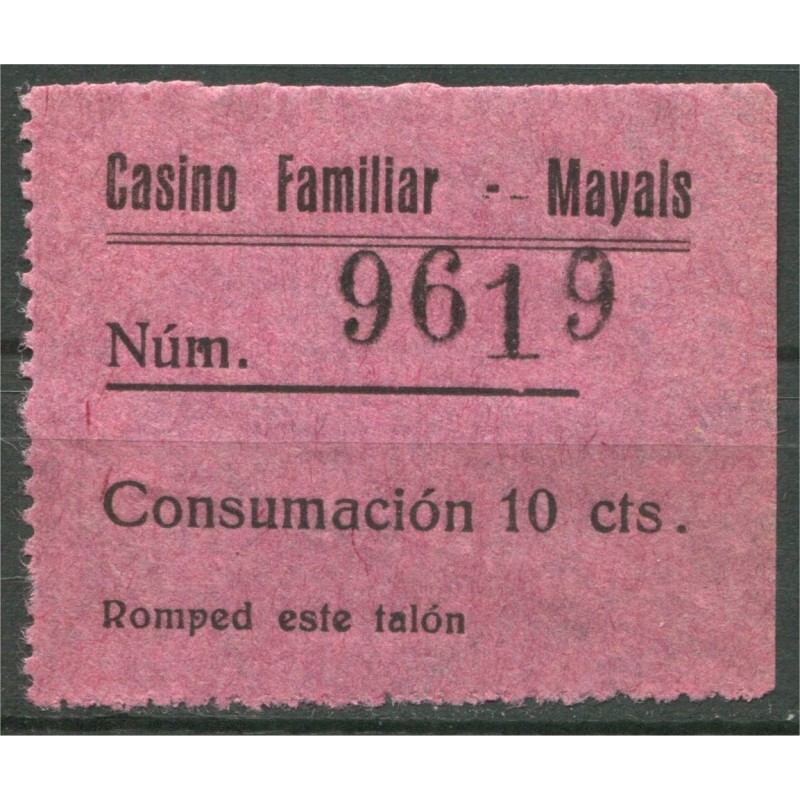 Maials, Casino Familiar - Mayals, Consumación 10c, no catalogado **