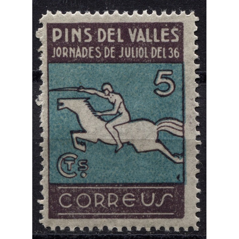 Pins del Vallès, 5c ocre y azul, papel transparente, variedad no catalogada *