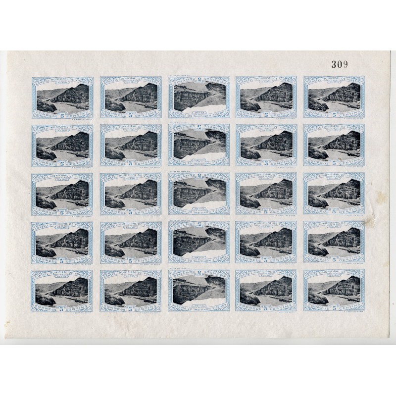 Vinebre, 5c azul y negro sin dentar en hoja completa Allepuz 5 **