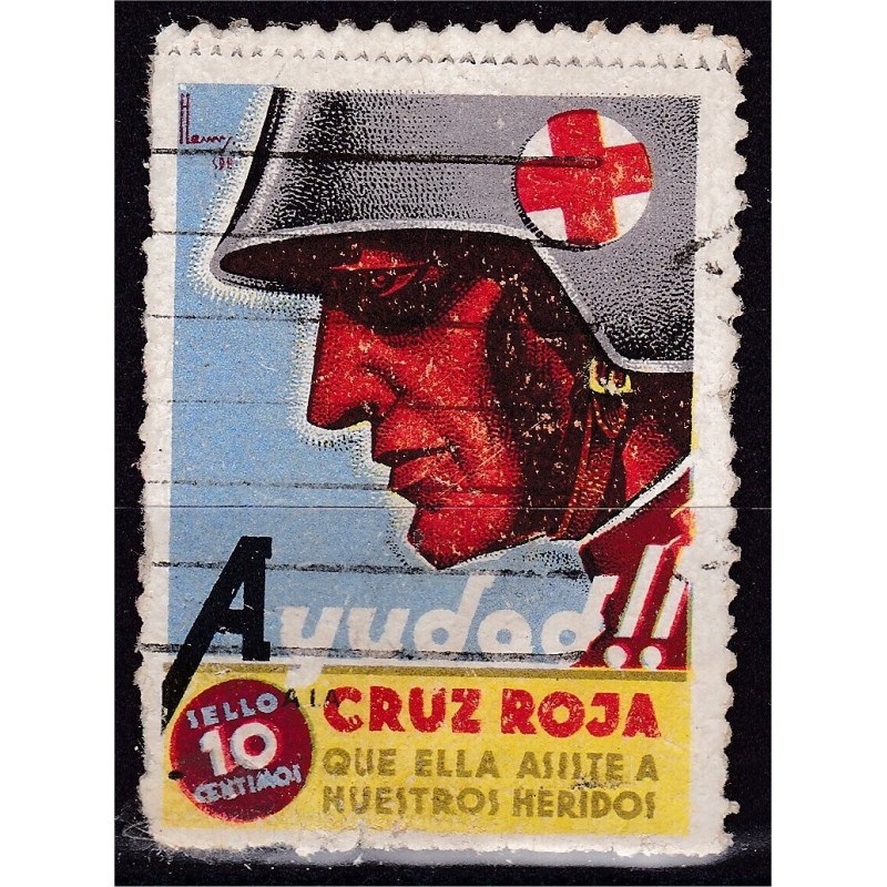 Cruz Roja Española, 1937, Ayudad a la Cruz Roja que ella asiste a nuestros heridos, 10c, GG1638, usado