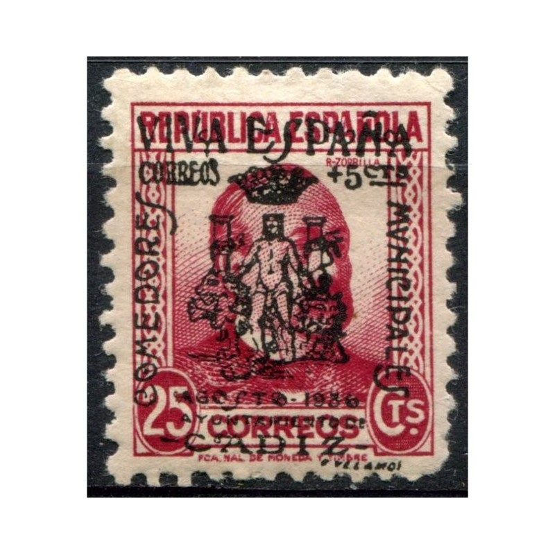 Cádiz, 1936, sobrecarga patriótica [N] sobre 25c, Edifil 7, *