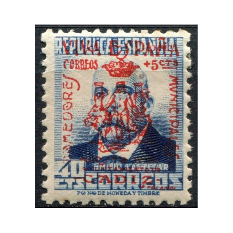 Cádiz, 1936, sobrecarga patriótica [R] sobre 40c, Edifil 9, *