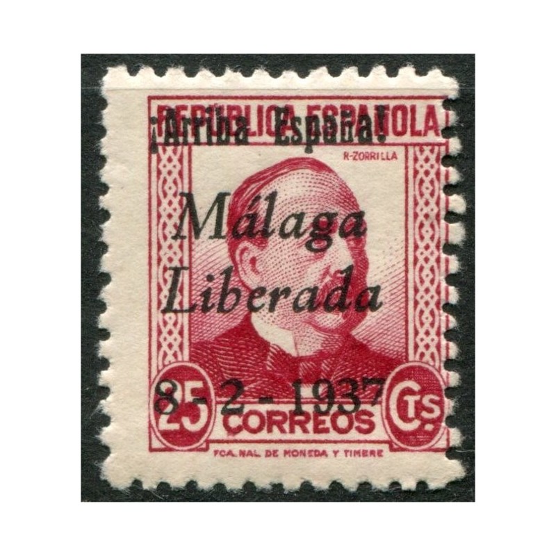 Málaga, sobrecarga patriótica, 1937, "Arriba España Málaga liberada 8-2-1937" [N] sobre 25c, Edifil 17, **