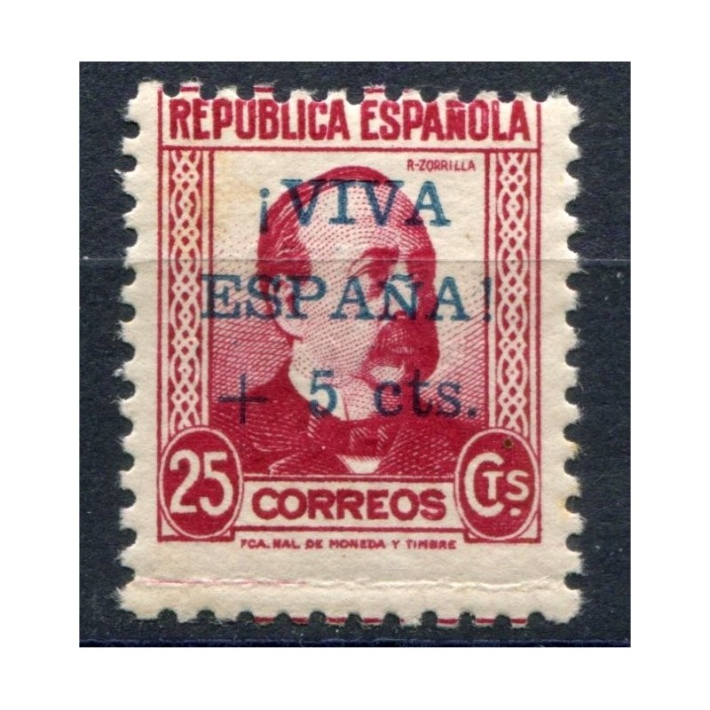 Orense, sobrecarga patriótica, 1936, "Viva España + 5 cts" azul en verso y anverso sobre 25c, no catalogado, **