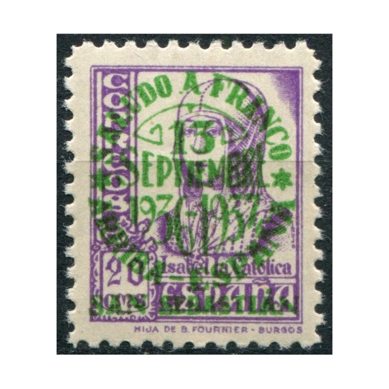 San Sebastián, sobrecarga patriótica, "Saludo a Franco Arriba España 1937" [V] sobre 20c, Edifil 44, **